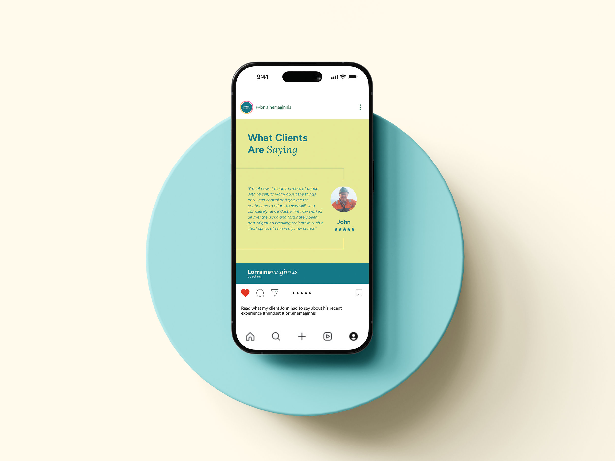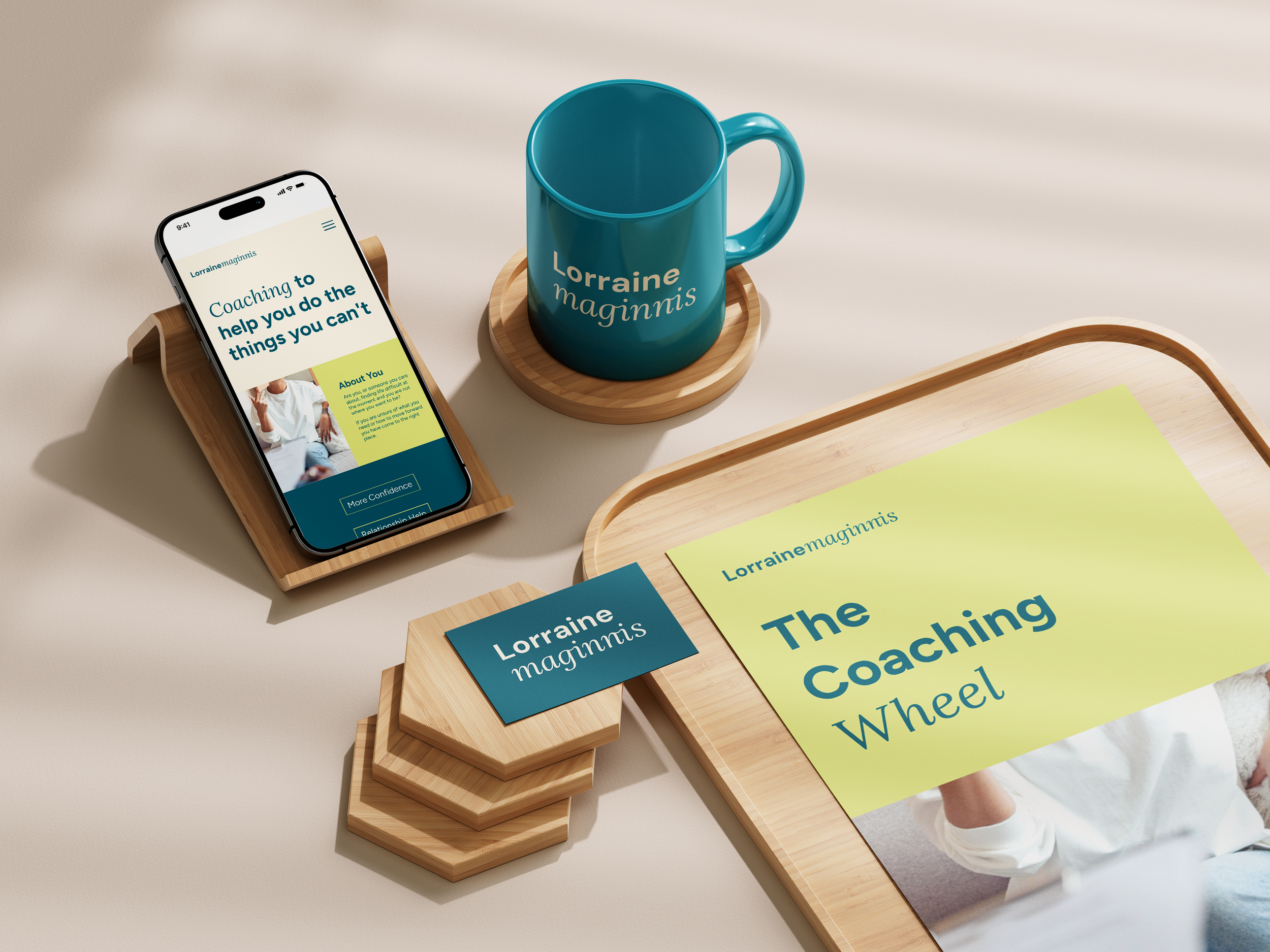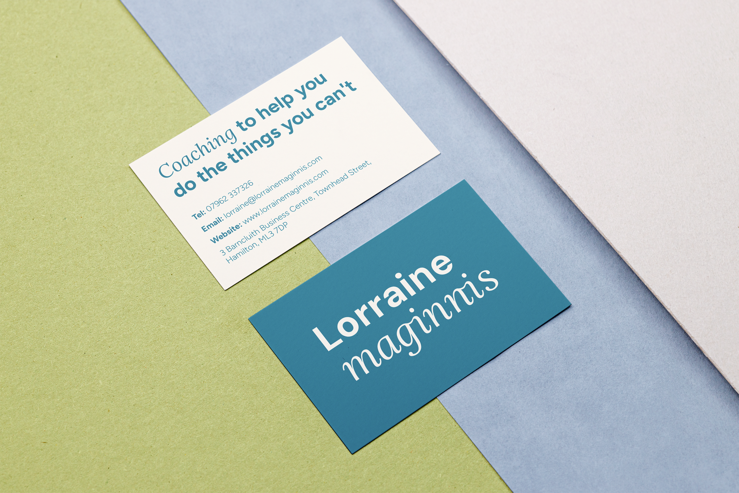 For Lorraine, a professional life coach, I developed a refreshed brand identity that reflects her expertise while feeling approachable, empathetic, and refined. I designed an elegant, professional wordmark with custom letterforms subtly shaped to resemble a hand on a shoulder—reinforcing the brand’s caring and supportive ethos. The colour palette combines calming tones with a touch of lime green to introduce freshness, renewal, and a sense of growth.
